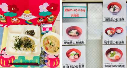 白みその雑煮の中に「あんこ入りのもち」、鰹だしの雑煮の中に「ぶり」など、色々な雑煮の話に「食べてみたい!」「絶対、大阪が一番おいしいよ!」と、興味を持ってくれていました。