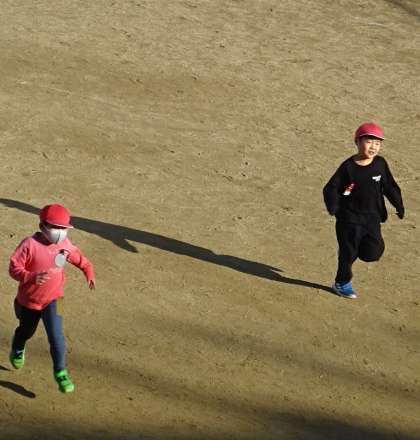 運動場で元気よく遊ぶ子どもたちの様子です。