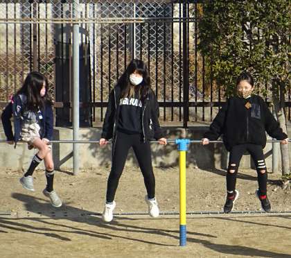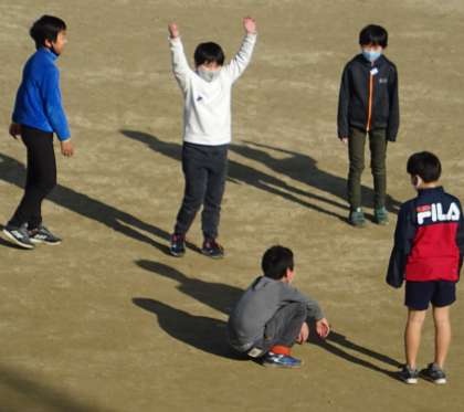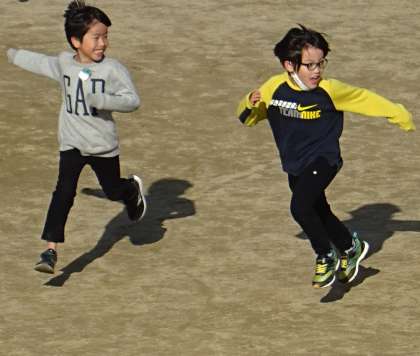 運動場で元気よく遊ぶ子どもたちの様子です。