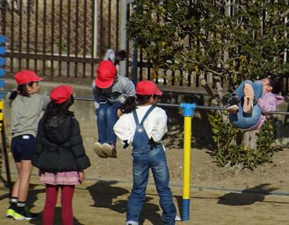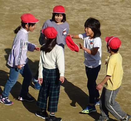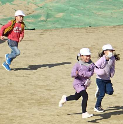運動場で元気よく遊ぶ子どもたちの様子です。
