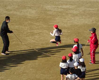 体育の授業で大縄跳びに挑戦しました。