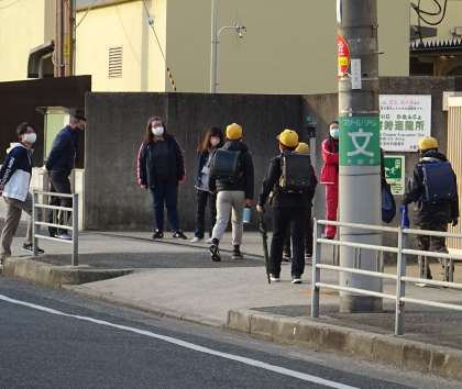 いつもと同じように教職員が校門で待っています。