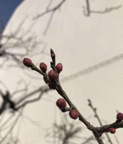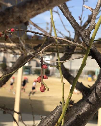 講堂前の梅は、毎年かわいい花を咲かせて春の訪れを告げてくれます。
