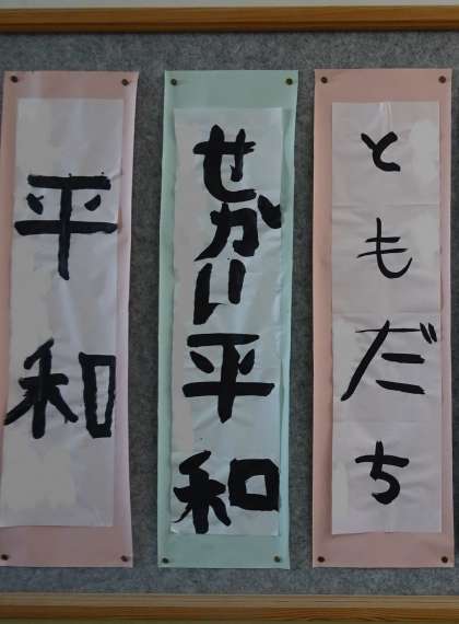 次々と完成した力強い作品が、掲示板に飾られています。