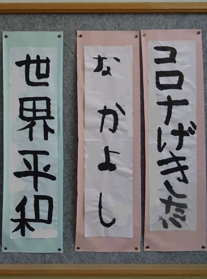 なかよし学級の子どもたちが、リレーかきぞめに挑戦しました。