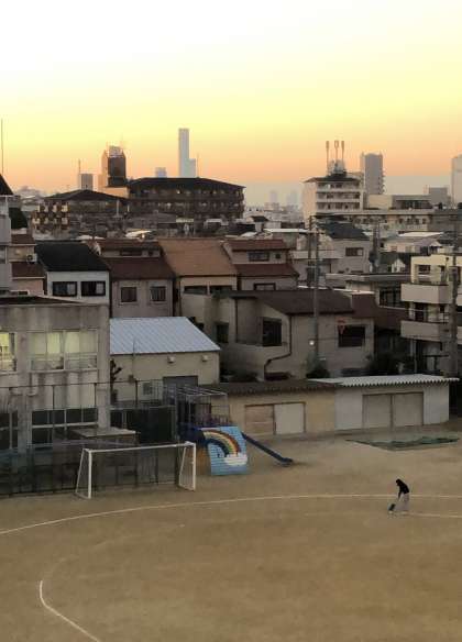 夕暮れの運動場。