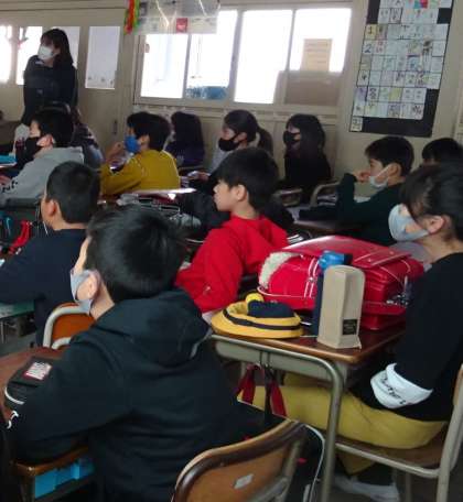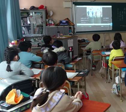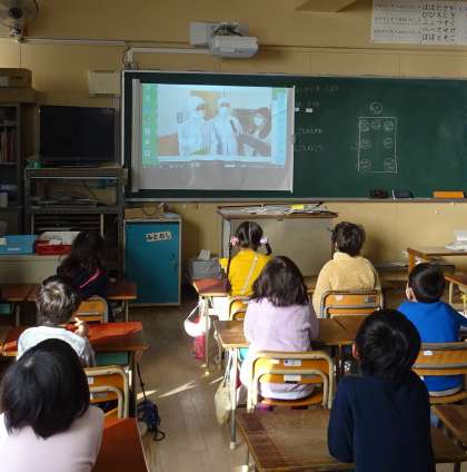 給食委員会が調理員さんにインタビューしている様子を、動画で見ています。