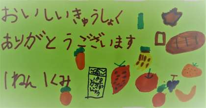 子どもたちから調理員さんへの感謝のメッセージです。