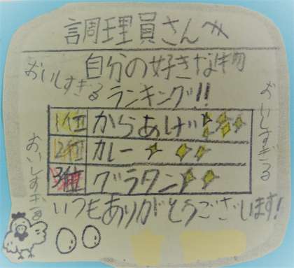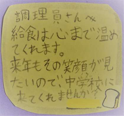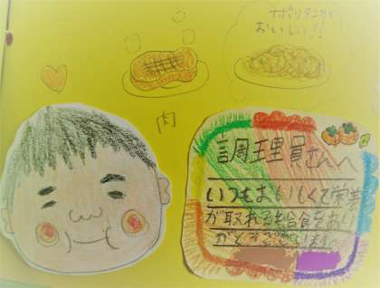 子どもたちから調理員さんへの感謝のメッセージです。
