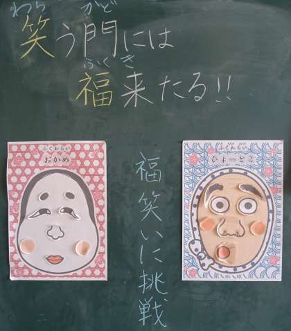 4年生の教室には、調べ学習の成果物や冬休みに作製した楽しい作品などが置かれています。