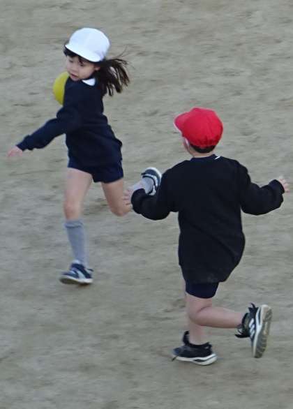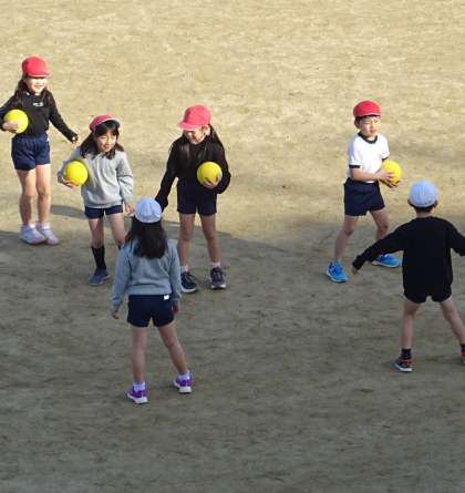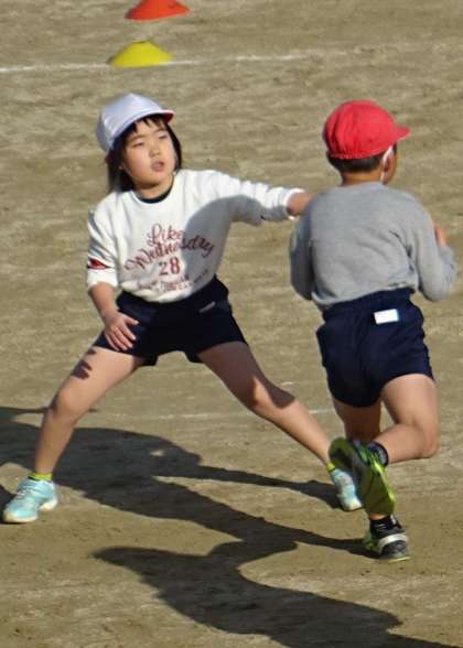 ボールを持って、相手チームの子にタッチされないようにゴールを目指して走り抜けます。