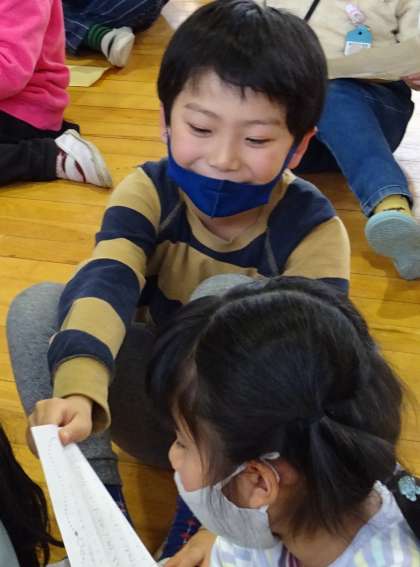お家の人が書いてくれた手紙を読んでいる様子です。