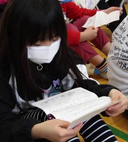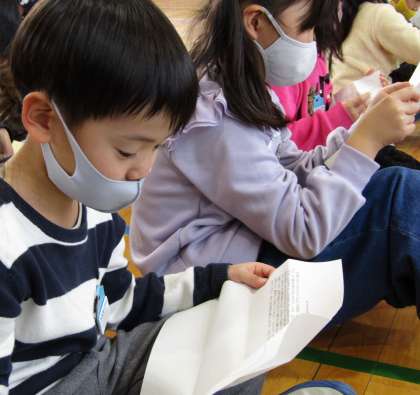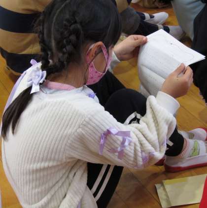 お家の人が書いてくれた手紙を読んでいる様子です。