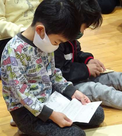 お家の人が書いてくれた手紙を読んでいる様子です。