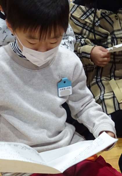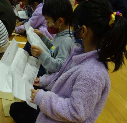 お家の人が書いてくれた手紙を読んでいる様子です。