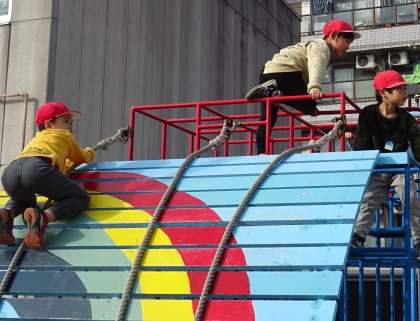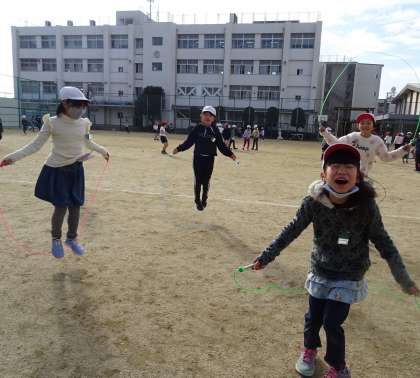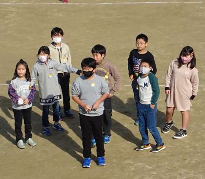 運動場で元気よく遊ぶ子どもたちの様子です。