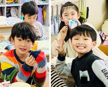 教室に運んでからバットのフタを開けると、甘い香り広がって「わ!すごーい!おいしそう!」「めっちゃいいにおい!ケーキ屋さんのにおいや!」と、大喜びでした!