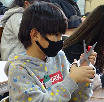 力を加減しながら慎重に切っています。