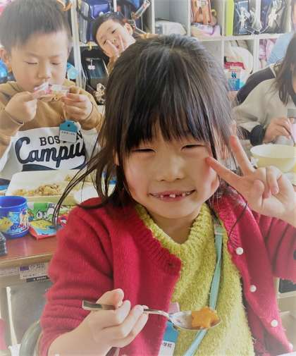 給食調理員さん、みんなで楽しみに待ってまーす!