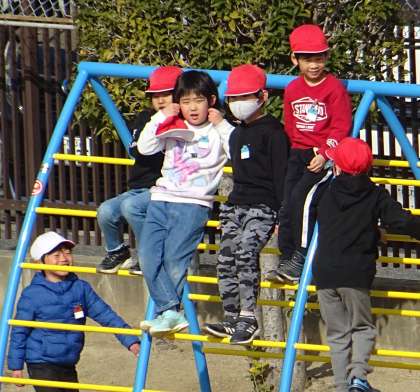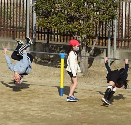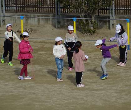 運動場で元気よく遊ぶ子どもたちの様子です。