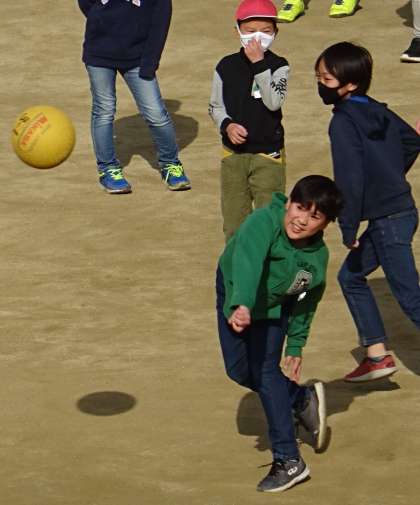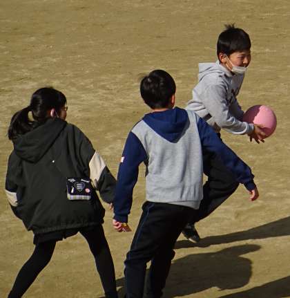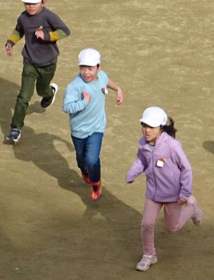 運動場で元気よく遊ぶ子どもたちの様子です。