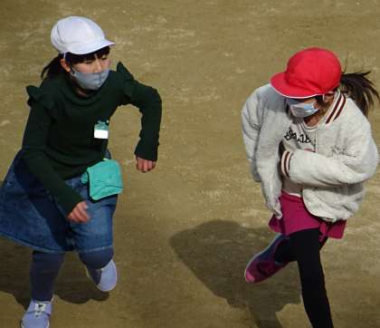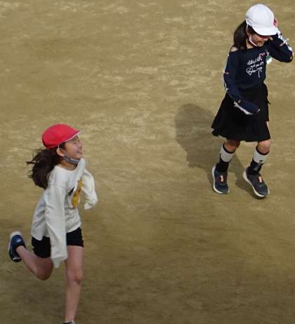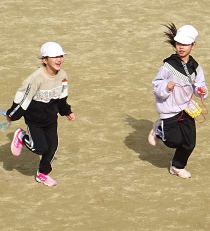 運動場で元気よく遊ぶ子どもたちの様子です。