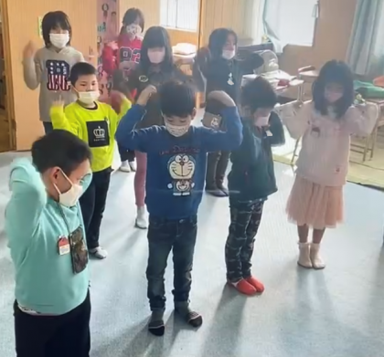 各クラスでも、なかよしの発表映像を見ながら、いっしょに楽しく歌って体を動かすことができました。