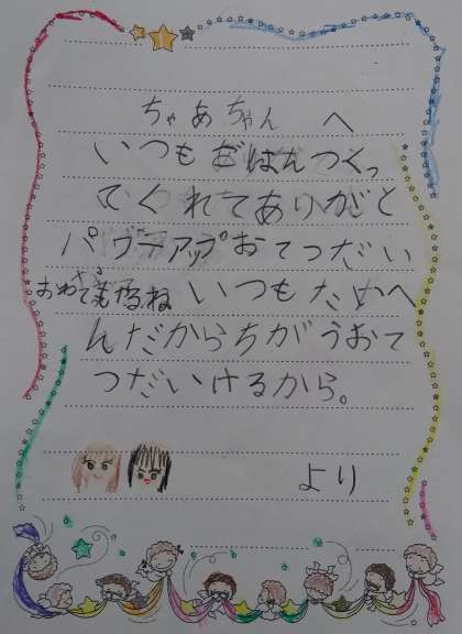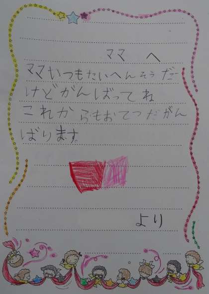 「お手伝い大作戦」の発表会で、保護者からお手紙をもらった子どもたち。