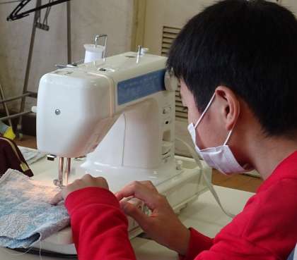 雑巾づくりに取り組んでいる様子です。