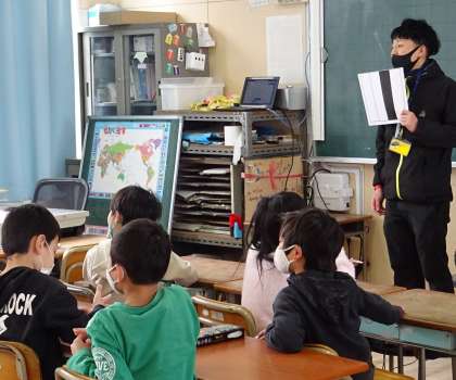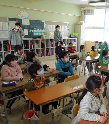 この日は、色塗りされたカード教材を使って、「4分の1」について考える学習活動をしました。