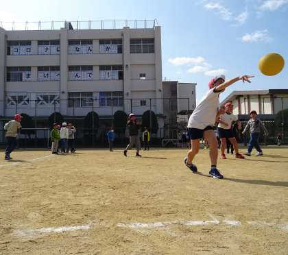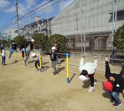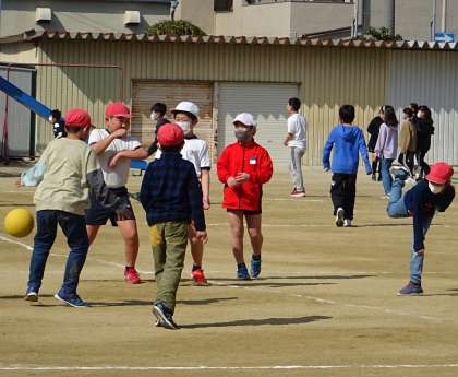 運動場で元気に遊ぶ子どもたちの様子です。