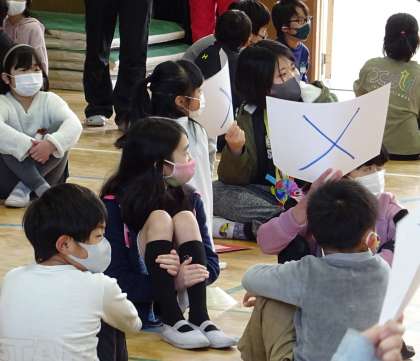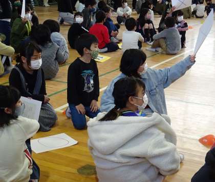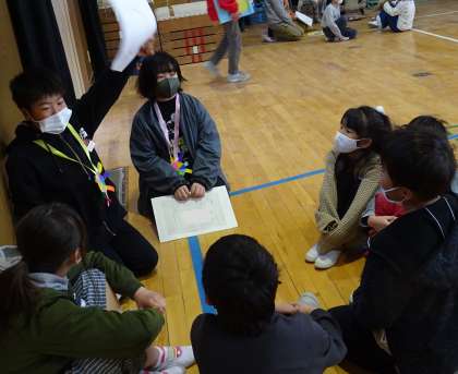 たてわり班で「6年生クイズ」に挑戦している様子です。