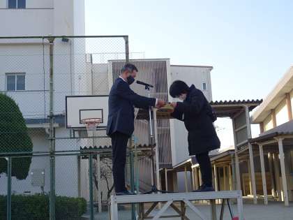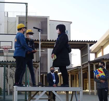 毎日15分休みに図書室を開放してくれている図書ボランティアさんへ、子どもたちから感謝のメッセージカードと、平野区長からの感謝状をお渡ししました。