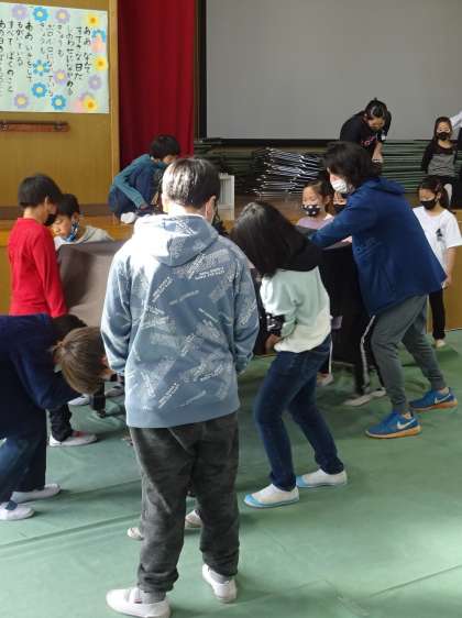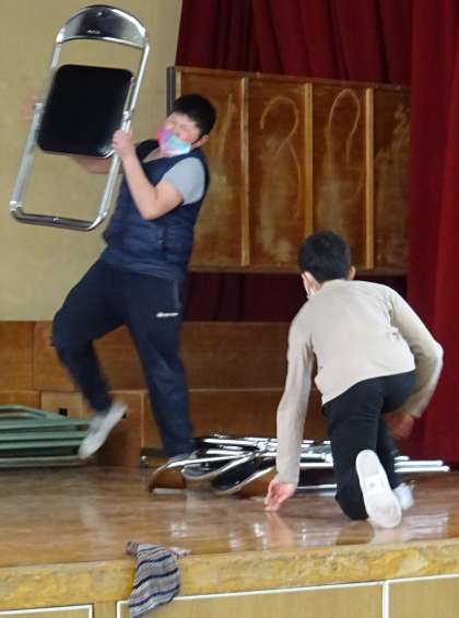 6年生と保護者の皆さんが気持ちよく卒業式を迎えられるようにと、思いを込めて会場設営に取り組みました。