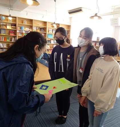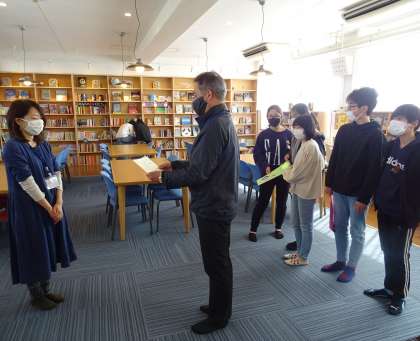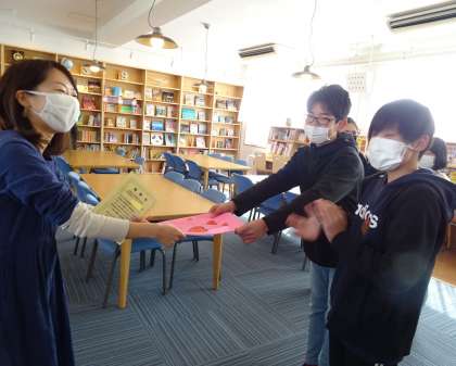 図書ボランティアの皆さんに、子どもたちから感謝の気持ちを込めて、メッセージカードをお渡ししました。