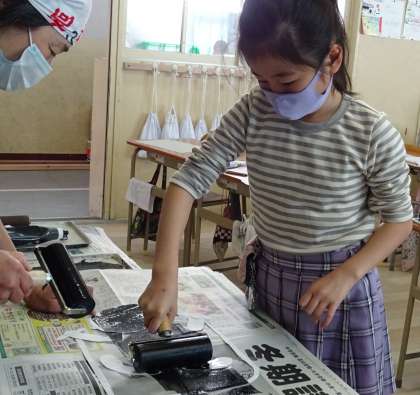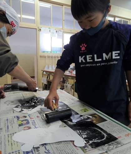 紙版画をしている様子です。