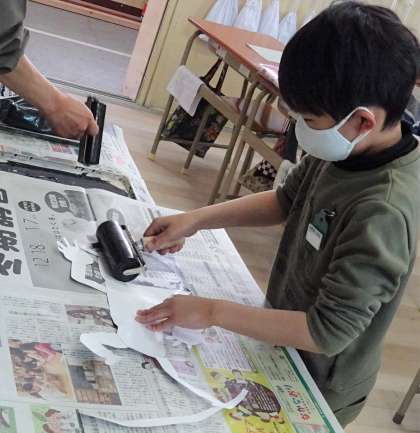 3年生 紙版画(3月3日)・・・1