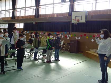 卒業式の練習をしている様子です。