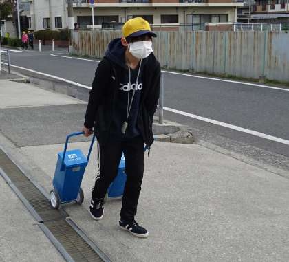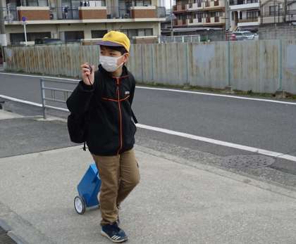 大きな荷物を運ぶ6年生… そうだ! 今日は6年生の卒業遠足だ(*^▽^*) 気をつけて行ってらっしゃい。