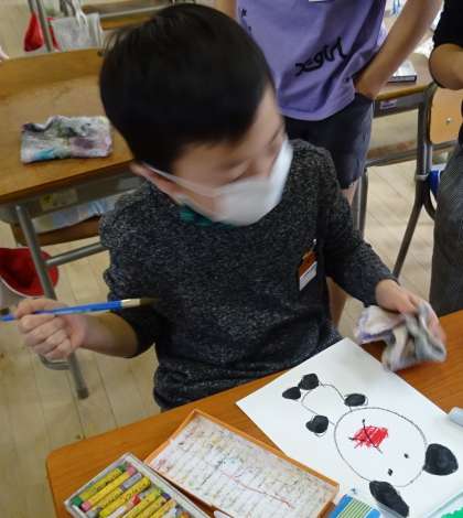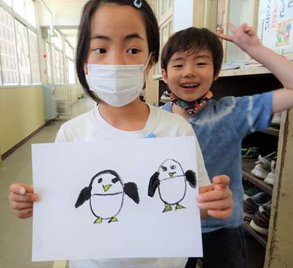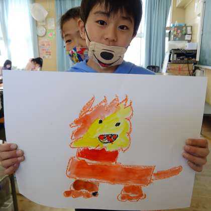 「ガラガラヘビ」が描けた子は、2枚目の自由作品に取り組みました。
