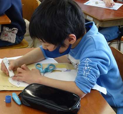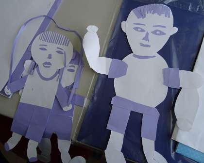 細かい動きが分かり易いように、2色の画用紙を使って作ります。