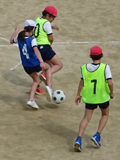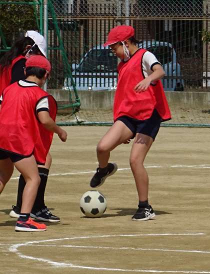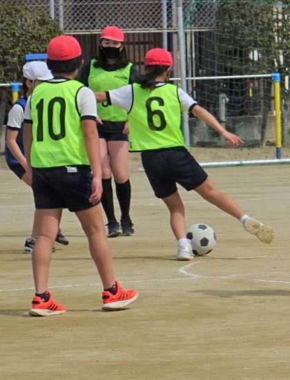 体育の授業でサッカー⚽をしている様子です。