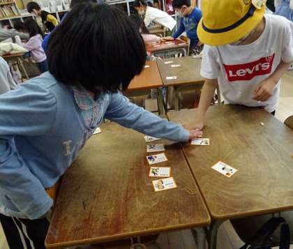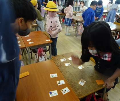 かるたをしている様子です。