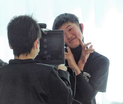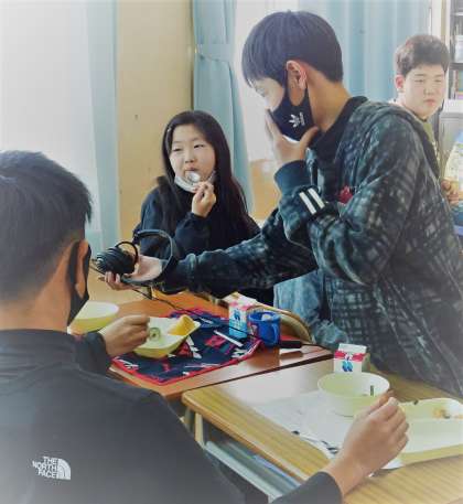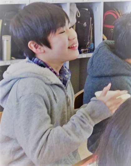 どんな顔で食べてるのかと思って6年生の教室をのぞいてみると、集会委員さんがインタビューに来ていました。