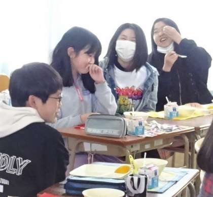 最後の給食をいただく6年生の様子です。
