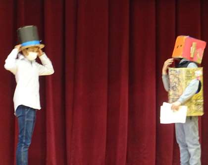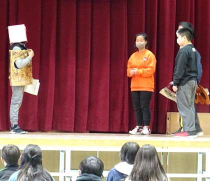 講堂で劇(コント?)が行われていました。