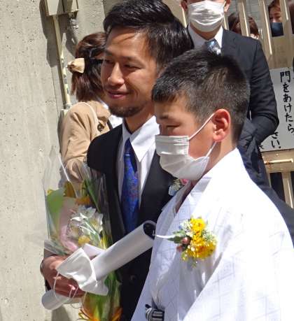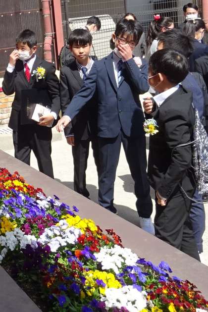 別れを惜しみながら、先生や友達と記念写真を撮っていました。