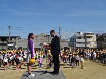青空の下、令和2年度の修了式を行いました。