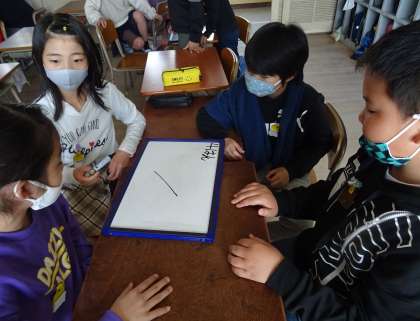 班対抗のクイズで楽しんでいる様子です。