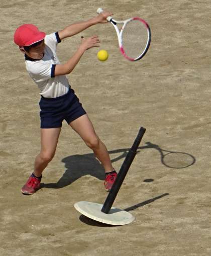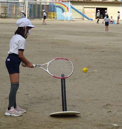 体育の授業で楽しくティーボールをしている様子です。